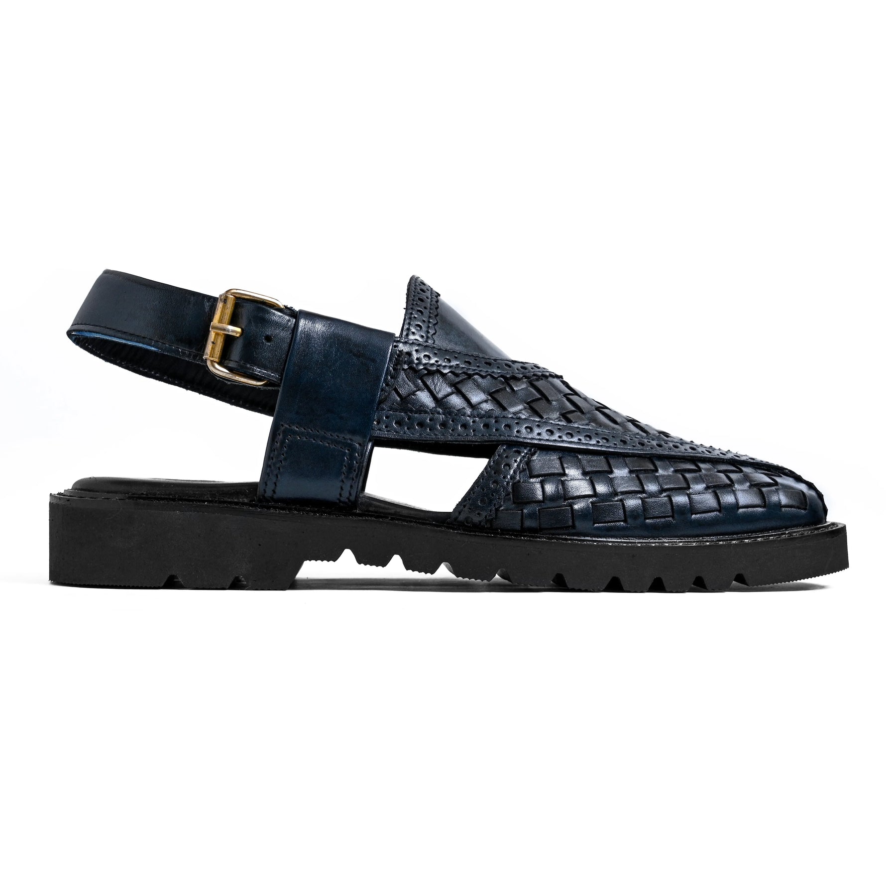 Khyber 04 redefines traditional footwear through a sophisticated Midnight Navy tone and intricate woven leather craftsmanship. Part of Cueřo’s Khyber Atelier, this design offers a contemporary alternative to classic black while preserving the authenticity of the Peshawari silhouette.