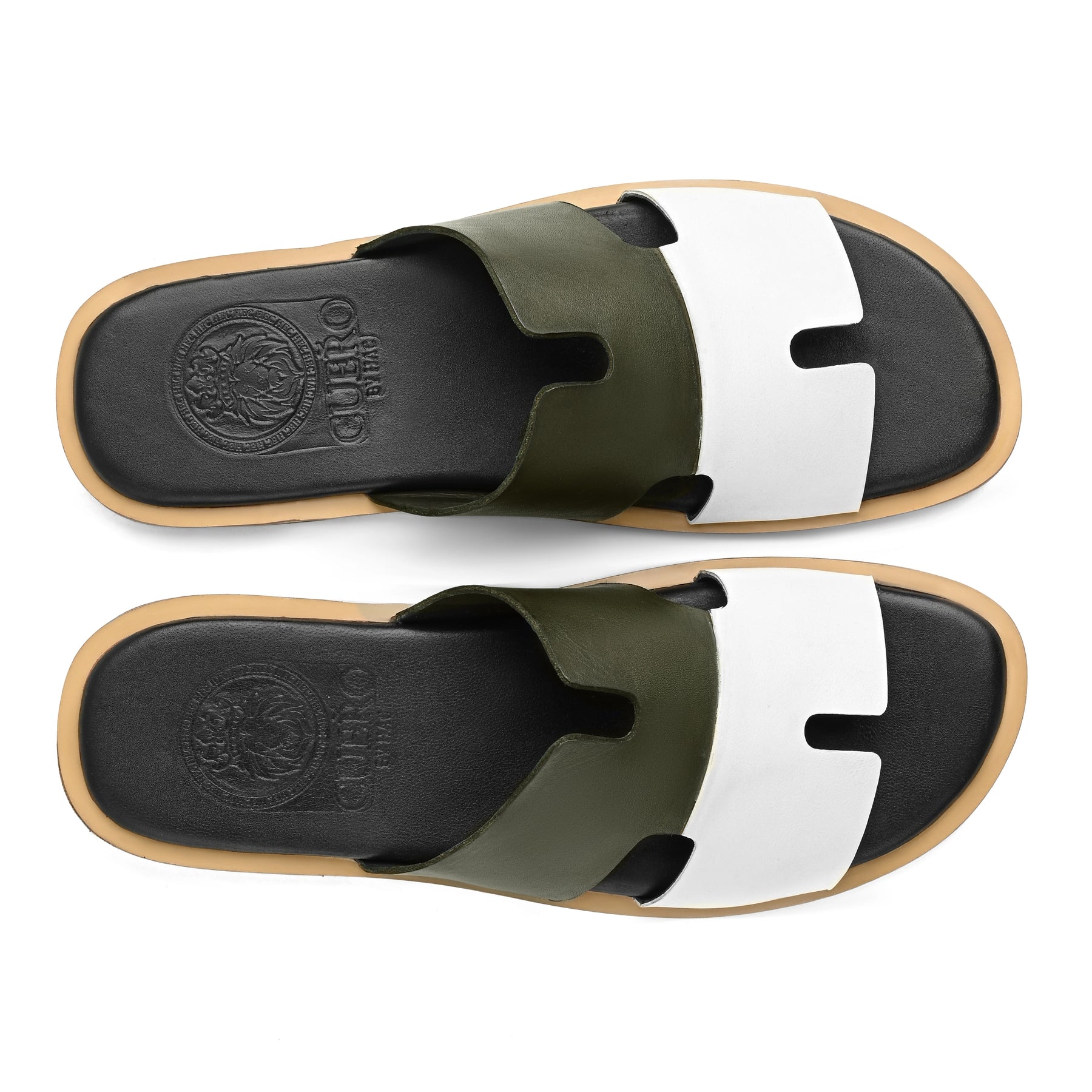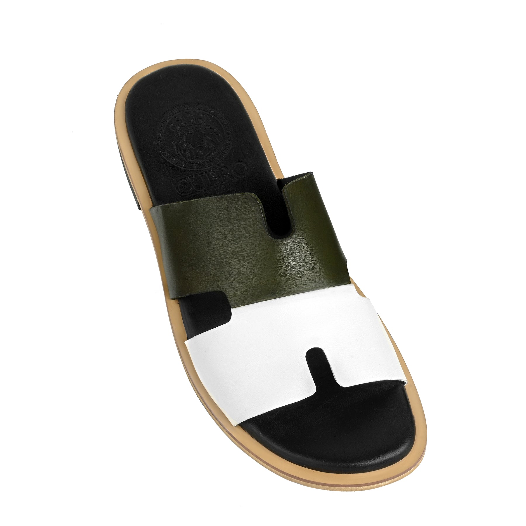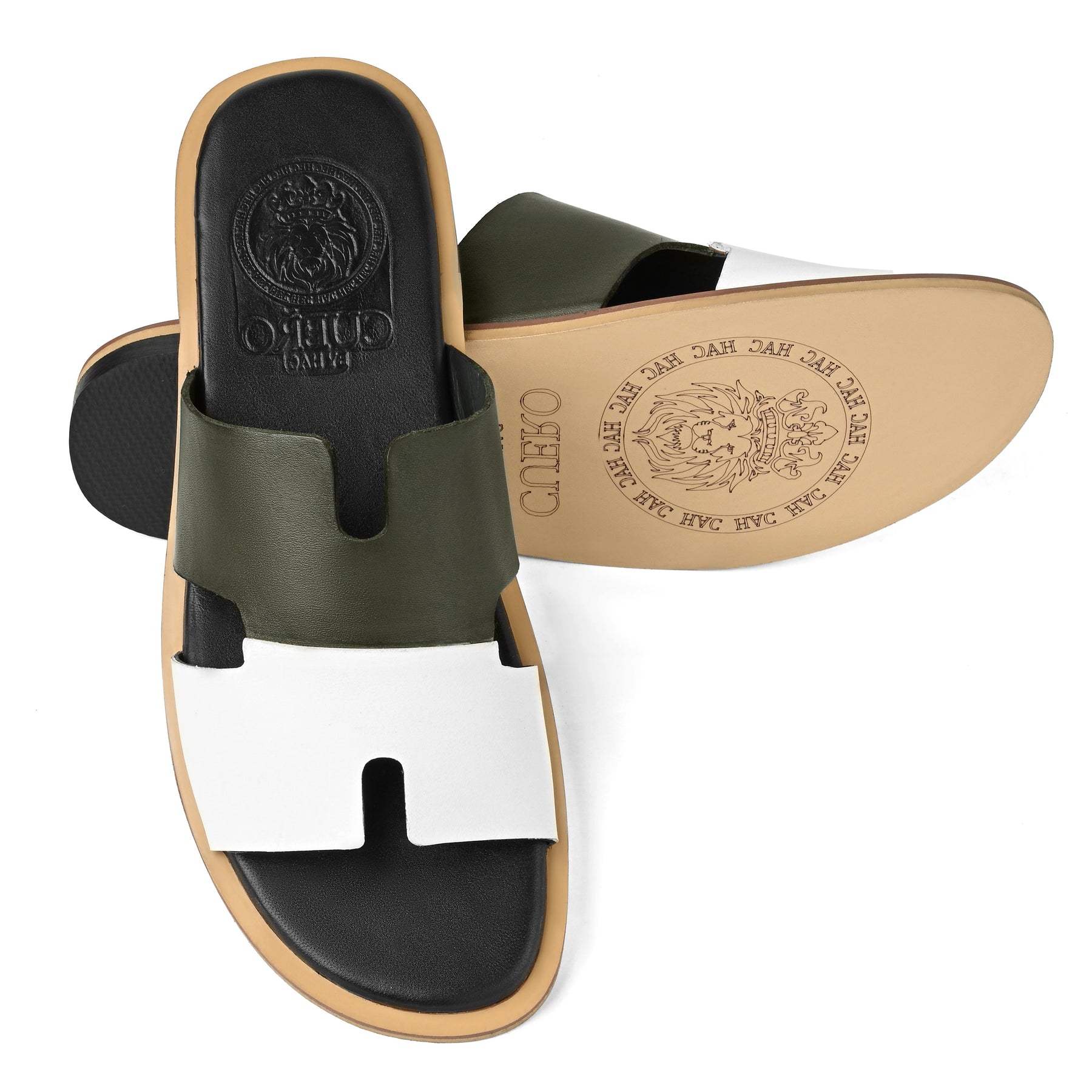 All-Leather Upper:Premium two-tone leather straps (olive green + white)